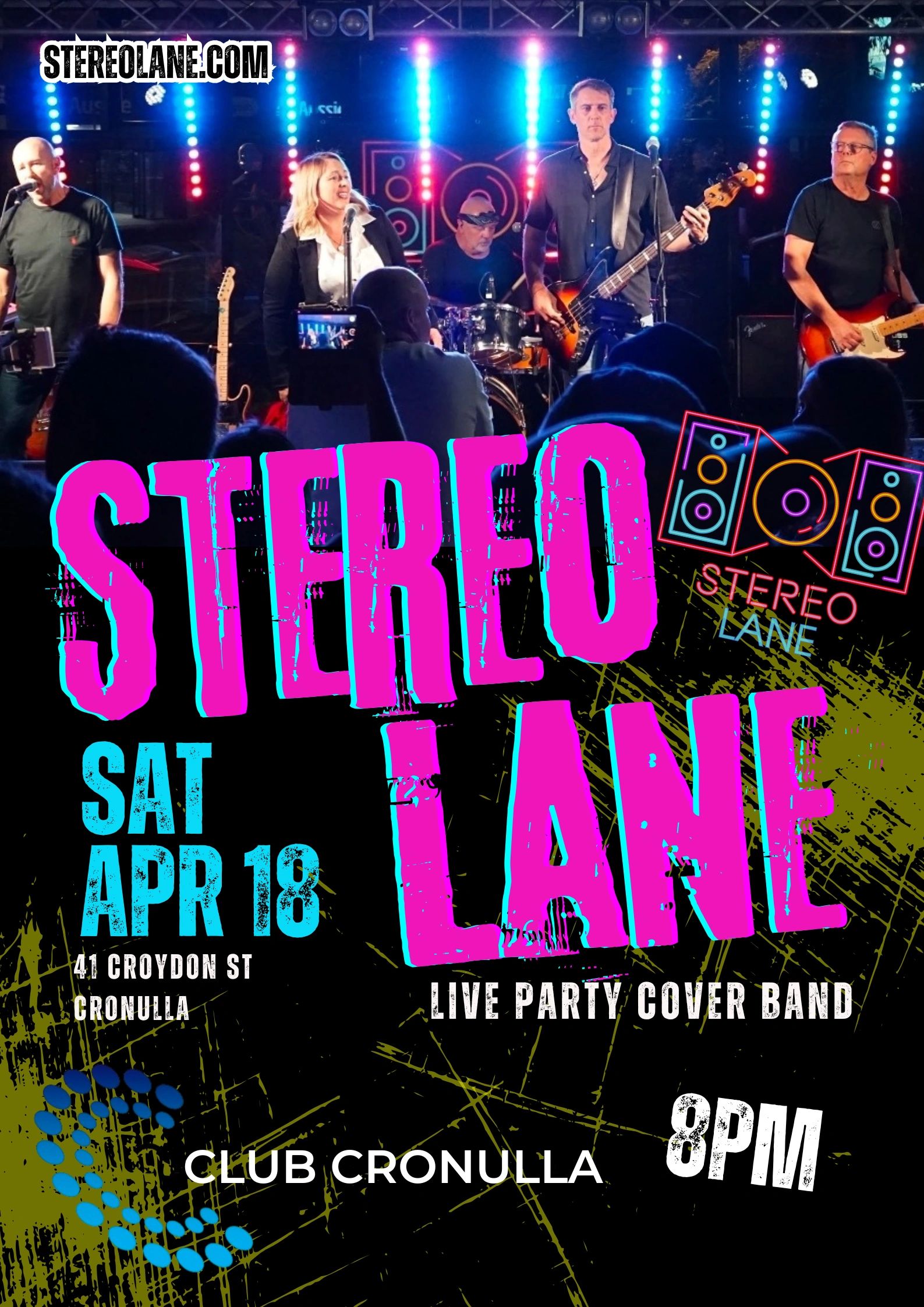 Stereo Lane are excited to be playing at Club Cronulla. It is always a great night so come along for some free live music.